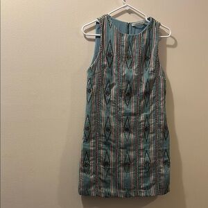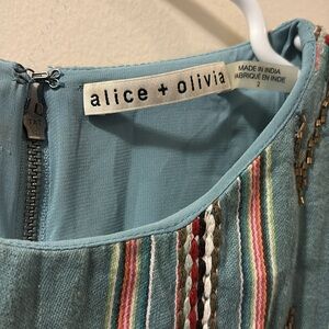 Alice and Olivia Patterned Sleeveless Dress in Teal - size 2 - cotton - beaded