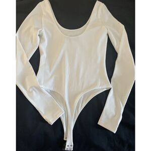 Alice and Olivia Rhys Ballet Neck Bodysuit in White size Medium