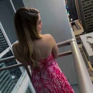 The fun pink and white valor/silk material adds an interesting pop to your wardrobe.