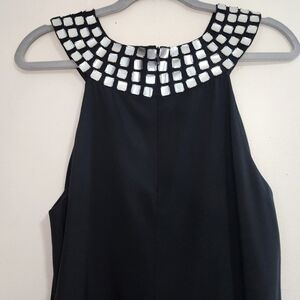 Alice and Olivia Vintage Black silver glass Rhinestone cleopatria Silk Sheath Dress with Pockets.