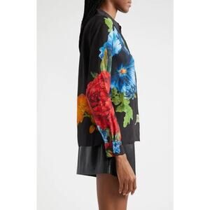 Alice and Olivia Willa Button Front Floral Silk Top Size XS Le Parisien $350