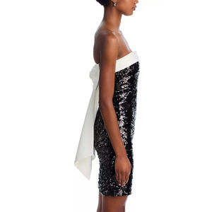Alice and Olivia Women Sibella Sequin Bow Strapless Dress Black/White Size 2