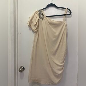 Alice by Temperley Cream 100% Silk One Shoulder Dress