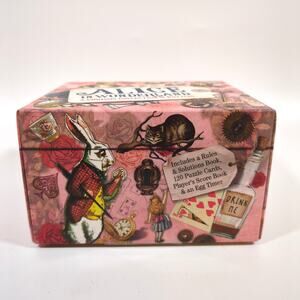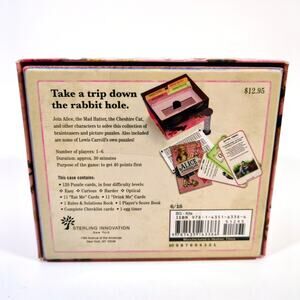 A Curious Collection of Puzzles – Alice in Wonderland Game. Includes a variety of whimsical puzzles, trivia, and brainteasers based on the classic story by Lewis Carroll. The set is complete and in good used condition with all original components. Great for family game night, Alice fans, or anyone who enjoys quirky, creative games. Box may show minor shelf wear.