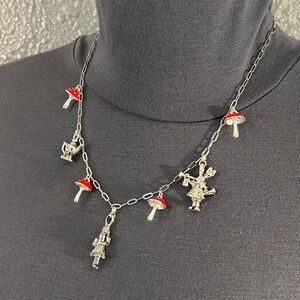 Alice in Wonderland Handmade Character Necklace, Mushrooms, Teapot, White Rabbit
