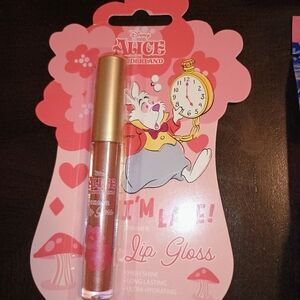 Charming Alice in Wonderland themed lip gloss set. Includes vibrant packaging with whimsical designs. Perfect for adding a touch of magic to your makeup collection.Alice in wonderland beauty set includes Kabuki brush. Queen of hearts beauty blenders golden afternoon lip gloss and Alice in wonderland lip gloss set