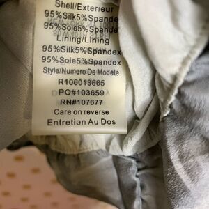 •Features: Gray ombré one shoulder silk top. Ruched detail on side. Fabric does not have stretch