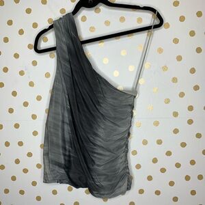 Alice + Olivia Gray Silk One Shoulder Top XS