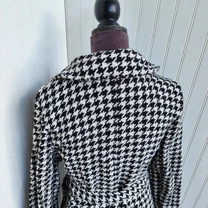 AliceBlue Houndstooth Black Ivory Woven Double-Breasted Blazer Jacket Unlined XL