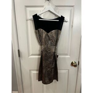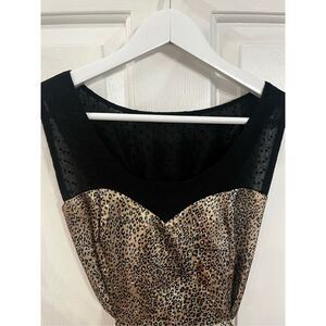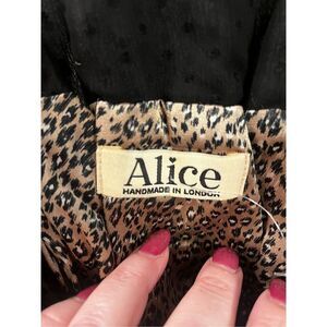 Alice Handmade In London Leopard Satin & Black Swiss Dot Tie Back Dress sz S EUC
