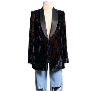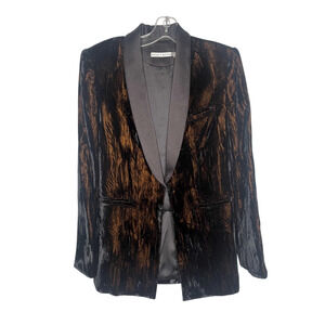 Alice+Olivia 2 Lola $550 Crushed Velvet Blazer Long Tuxedo Jacket Black Copper