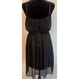 This elegant black mini cocktail dress by Alice+Olivia is a perfect addition to your wardrobe. The dress features a solid pattern, round neckline, and spaghetti straps that can be adjusted to your liking. It is made of lightweight chiffon material that makes it perfect for any season, whether it's summer, fall, winter, or spring.