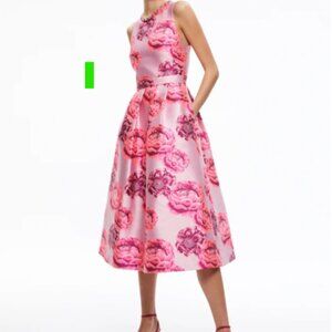 Alice+Olivia CHERRA EMBELLISHED NECK MIDI DRESS Size 8 NWT.