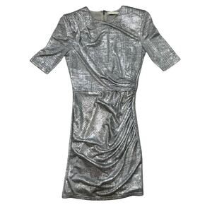 Alice + Olivia Delora Metallic Silver Ruched Mini Dress | Size 0