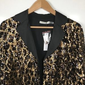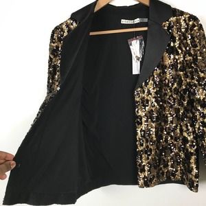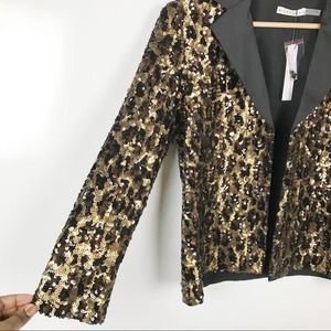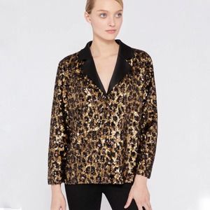 Alice+Olivia Kier Sequin Leopard Blazer Jacket XS Gold Black PJ Coat