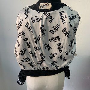 Such a unique jacket! Only worn once, size 2. Cool swirly beaded pattern with silky Beatles print on the inside.