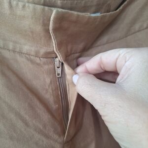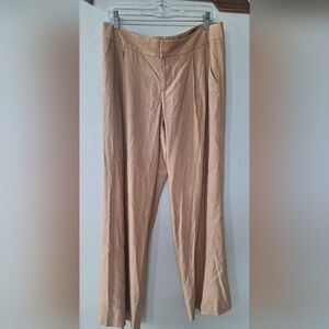 Alice+Olivia Womens Tan Linen Blend trousers. Wide Leg. Front slant pockets. Zip with hook and eye closure. Front pleats. Back flat pockets. No stretch in waist. Size 10 Waist flat lay 16.5" Rise 10" Inseam 33" hem width 13.5" measurements are approximate