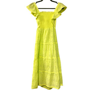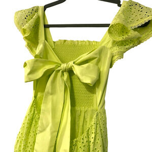 Alice+Olivia XS Jules Eyelet $595 Midi Nap Dress Cotton Bow Tie Lime Green 0 2