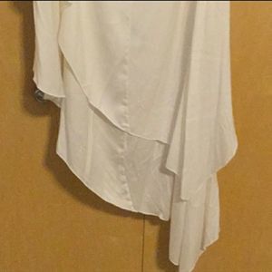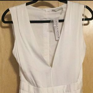 Chantay Sleeveless Asymmetric Maxi Dress Alice + Olivia "Chantay" maxi dress with cutout back. Plunging neckline. Sleeveless; asymmetrical profile Cutout at back Maxi dress cut V neck Sleeveless Button at back Hook-and-eye at back Exposed zip at back Open back Lined Shell: 91% silk/9% elastane Lining: 94% polyester/6% elastane Dry clean