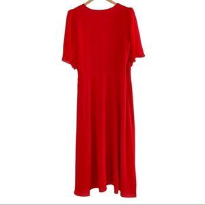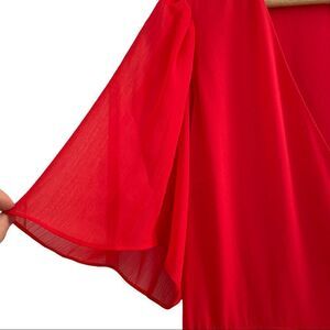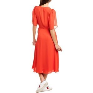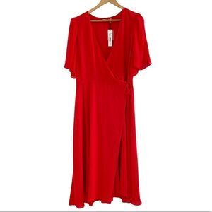 A whimsical and flirty celeb favorite. Suri Wrap Dress in bright poppy wit crepe design and chiffon flutter sleeves Approximately 45in from shoulder to hem Self-tie wrap closure.
