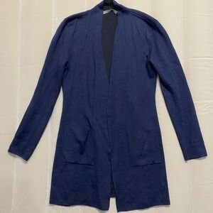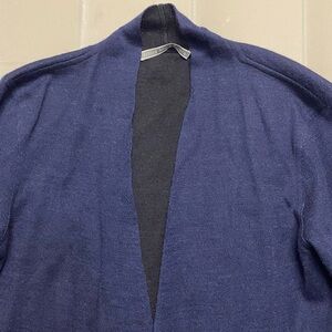 Alicia Adams Alpaca Women’s Sweater Cardigan Open Front Pockets Navy Luxury