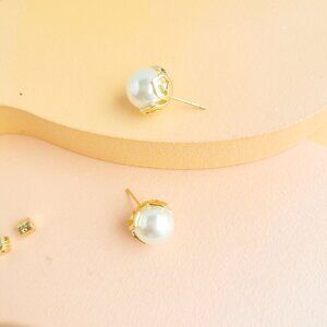 Alicia Bonnie - Ashton Pearl Gold Stud Earrings - NEW