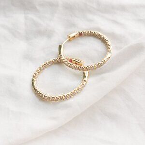 Alicia Bonnie Twinkle Delight White Crystal Gold Large Hoop Earrings