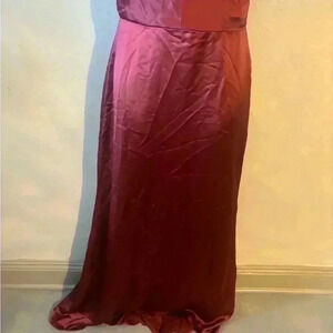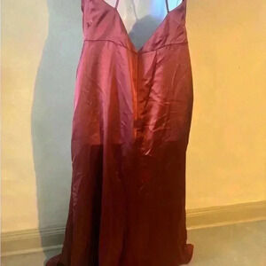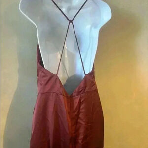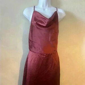 A high cowl neck is contrasted by a low-dipping back and supported by criss-crossed spaghetti straps in this fluid satin stunner, which boasts just a hint of a train to trail down the aisle after you.