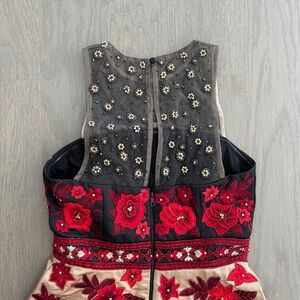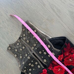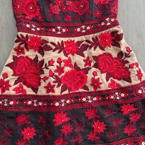 Alicia + Olivia Sarai Embellished Floral High Low Gown Red Black Beaded - Size 2
