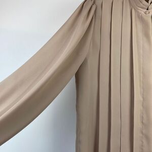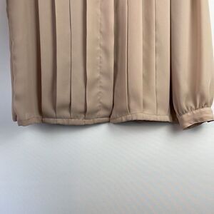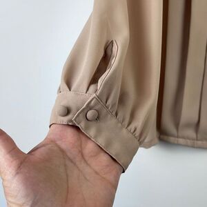 Alicia Women's Secretary Pleated Mock Necck Long Sleeve Blouse Top Tan Size 18