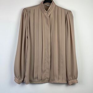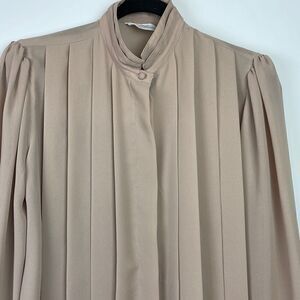 Alicia. Secretary Pleated Mock Neck Long Sleeve Blouse Top Tan Size 18