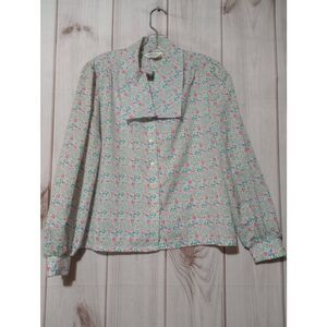 Alicia Shirt Ladies 10 Petite Button Front Long Sleeve Pink Floral