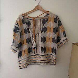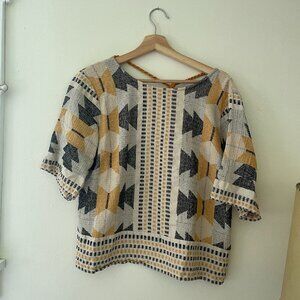 Great top from Anthropologie- super soft and easy to wear. No noticeable flaws. Listed size large but fits S-M well with looser fit.
