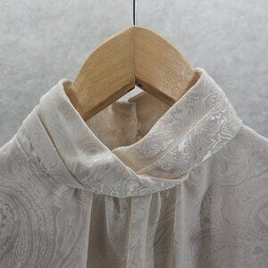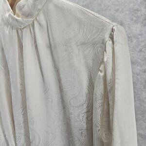 Alicia Vintage Ivory Blouse High Neck Secretary Holiday Silky-feel Womens 12