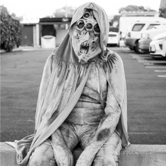 Gently used. Comes with mask, full length hooded cape and alien hands.