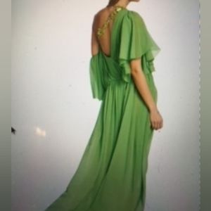 This Aliette one-shoulder gown features a romantic draped silhouette crafted of silk chiffon. A cut-out bodice with a floral embellished asymmetric strap defines the look. One-shoulder neckline Short sleeves Cut-out bodice Pulls over 100% silk Dry clean Made in USA