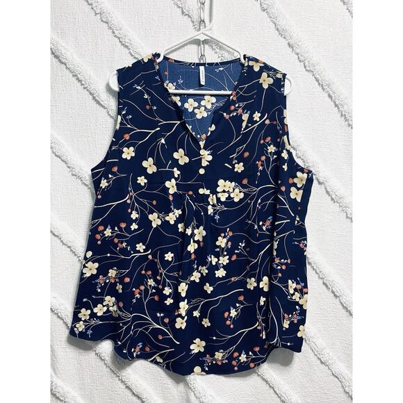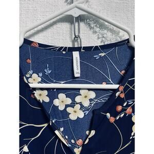 Aligaduo Summer Women’s V-neck Tunic Shirt Navy Floral 2XL