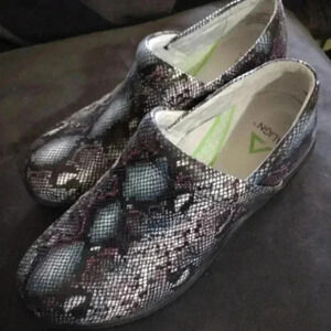 Align Indya slip resistant nursing clogs snake print. 7 1/2 Nurse Mates