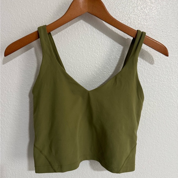 Chic olive green top by Lululemon Athletica. Ideal for everyday wear. Padding Inserts not included.