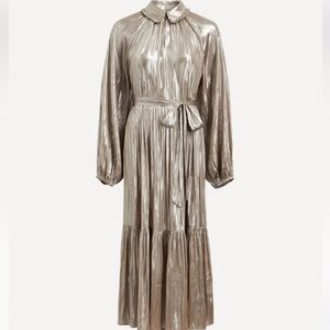 Aligne Anthropologie Champagne shiny Foil Gavid Dress gown UK10 /US 6