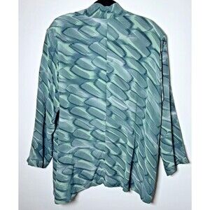 Aliki Yamani Creations Silk Cardigan Womens 2X Open Front Sheer Green Abstract