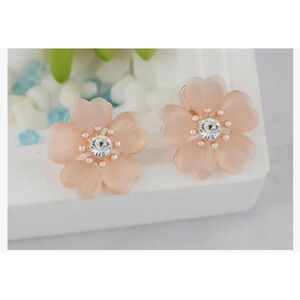 Alilang Silver Shiny Sparkly Crystal Pink Flower Accessories Stud Earrings