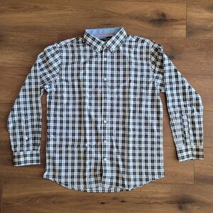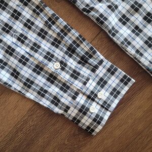 Alimens & Gentle Mens L Black Plaid Button Down Shirt Pocket Long Sleeve
