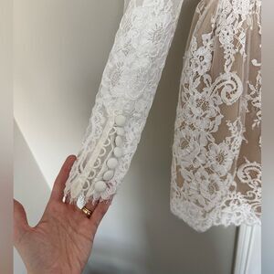 Custom dress from Australia! Skirt has one layer of white and three layers of nude organza so not too sheer. Sleeves are sheer. Boning in bodice to SNATCH