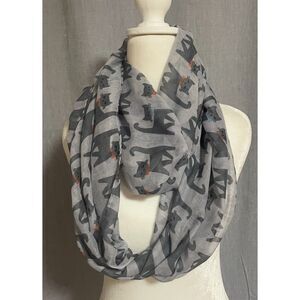 Alina Gray Cat Print Infinity Scarf Lightweight Sheer Polyester Loop