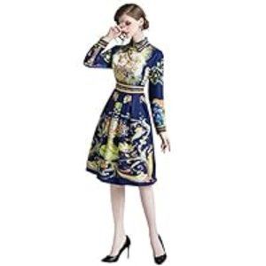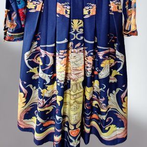 A-line Baroque Midi dress, Navy gold with Lions, size 8