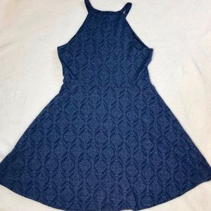 Light navy blue A-line dress. Miami brand from Francesca's. Beautiful ornate detailing in fabric.