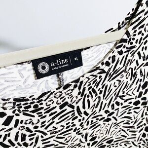 A-line Hawaii short sleeve dress with black brushstrokes print.