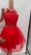 This is a beautiful and elegant red dress adorned with rhinestones. The dress is perfect for prom, quinceanera, or any other formal party. It is a short dress designed to show off your legs and has a fashionable look. The dress will make you stand out in any event you wear it to.
