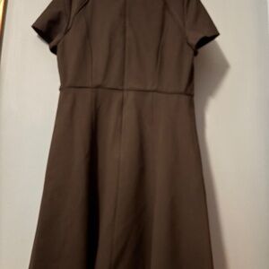 Never worn, new with tags! Thick poly blend material, so great for autumn! Easy to dress up or dress down. Short sleeve. Boob darts. Length hits at the knee. Zipper with clasp closure.